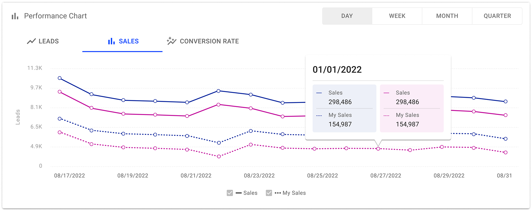 Aggregated View of Leads / Sales / Sales Value / Conversion Rate